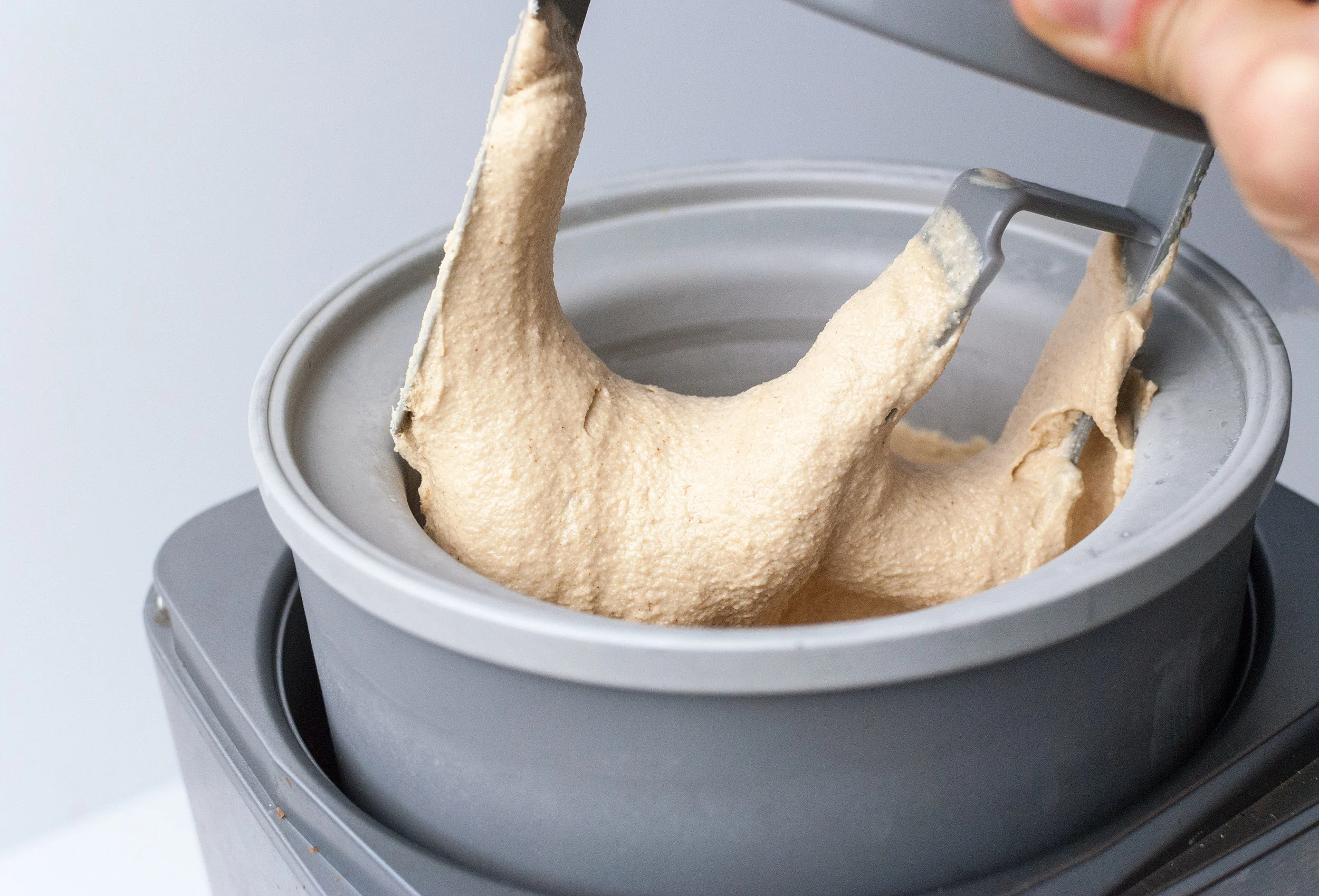 Pour the mixture into your ice cream churner that has been prepared according to your models instructions and churn. If you’re using a frozen bowl, like ours, you’ll want to churn it for around 25 minutes, checking frequently after the 22 minute mark to make sure that it’s not over-churning. (Beware over-churning because you don’t want to make frozen butter!)